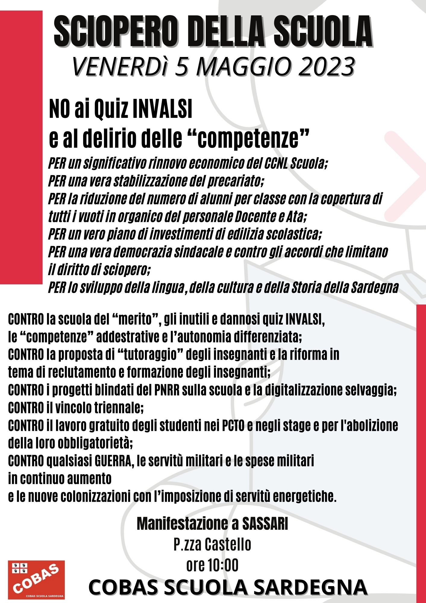 SCIOPERO della SCUOLA venerdì 5 maggio 2023 - Istituti Scolastici Sardegna
