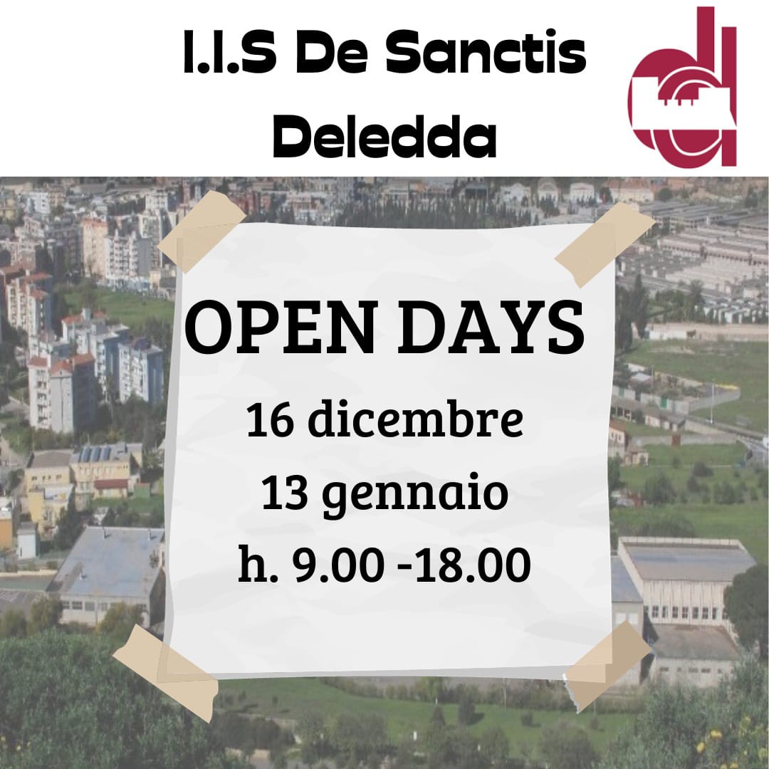 Sabato 16 dicembre 2023 open day(ore 9.00 - 13.30, V.le Colombo 37 Cagliari).